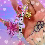This adorable one of a kind, Keyring/bag charm custom made by me - including one of my Y2K butterfly sparkly acrylic keyrings, rainbow crystal heart gems & a little gold bell so everyone can hear you coming 💕✨